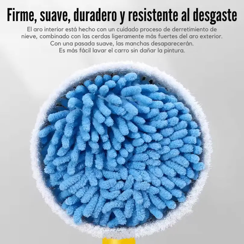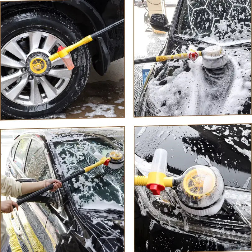 El cepillo utiliza un sistema automático que gira mientras se conecta a la manguera, facilitando la limpieza de todas las superficies del auto.